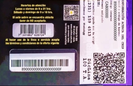 Tarjetas SIM de AT&T, Unefon y Movistar con activación inmediata.