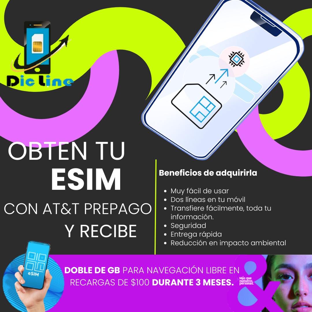 Tarjetas SIM de AT&T, Unefon y Movistar con activación inmediata.